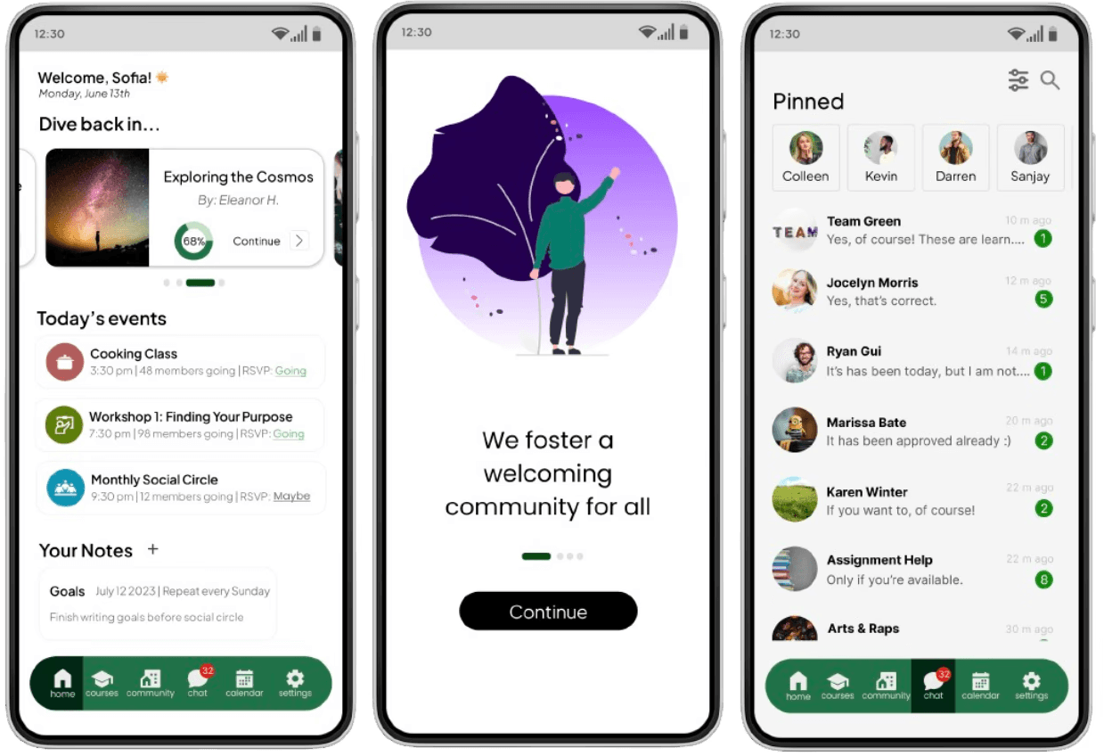 Users should be able to discover what they love through courses and should be able to continue after the 12-week program offered by Green String Network.