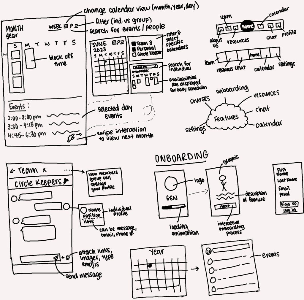 Before beginning the design, we created a quick map to ensure that the user is able to seamlessly navigate through the features we were assigned. This also allowed us to determine how many screens we needed to design.