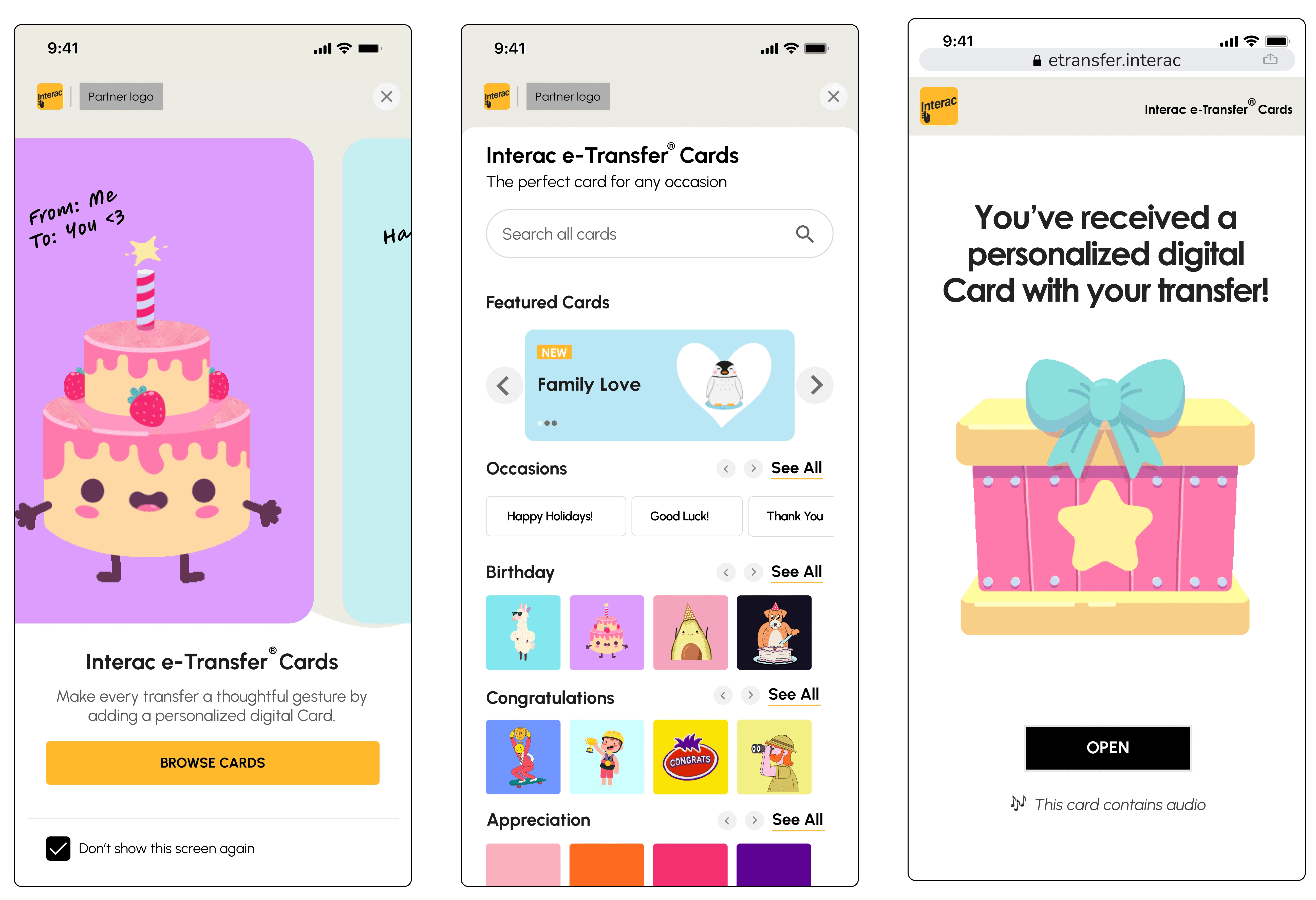 In 2024, Interac acquired the exclusive Canadian rights to Vouchr, an engagement platform allowing users to send and receive multimedia notifications along with their transfers.